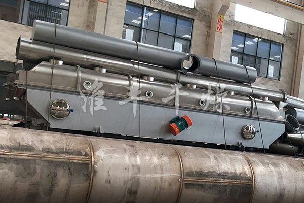 物料自進料口進入機內,在振動力作用下,物料沿水平流化床拋擲,向前連續運動,熱風向上穿過流化床同濕物料換熱后,濕空氣經旋風分離器除塵后由排風口排出,干燥物料由排料口排出。